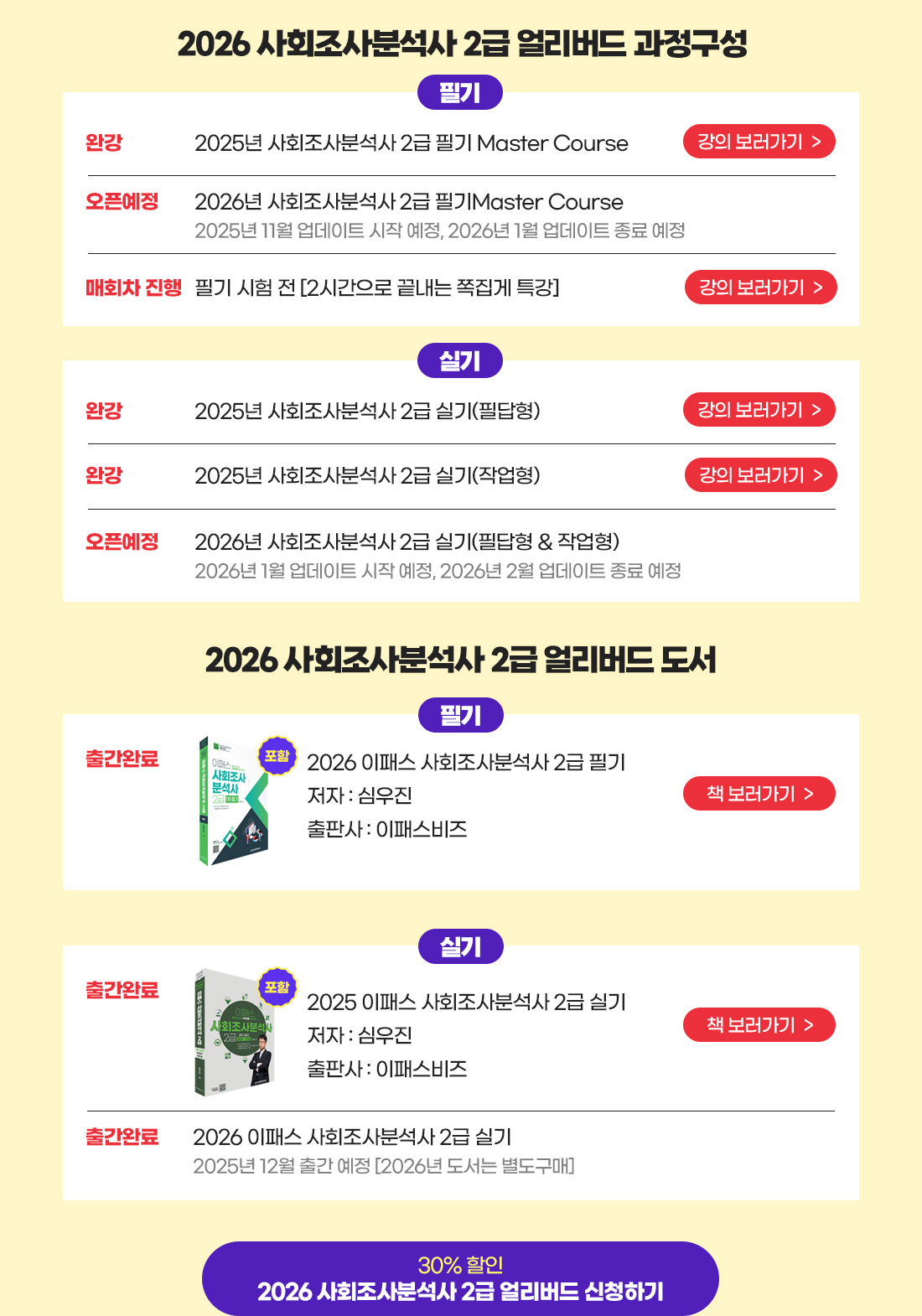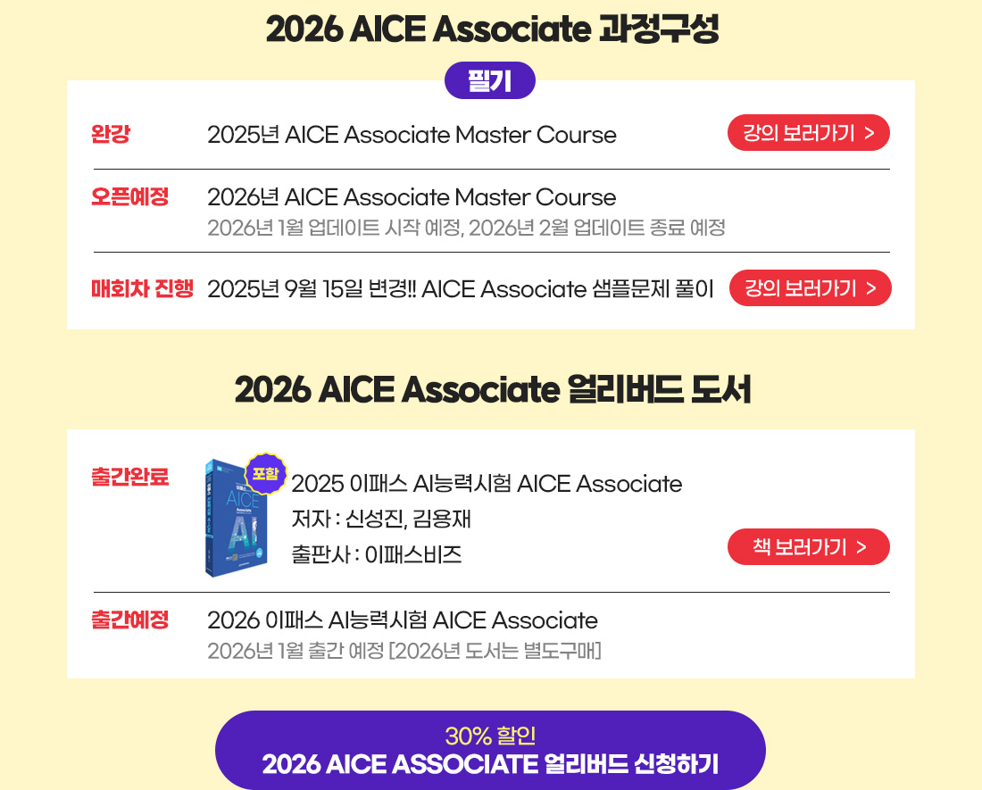 이벤트안내홈>커뮤니티>이벤트안내 진행중 🍁2026년 신규과정을 가장 빠르게 만나는 방법🍁 이패스비즈 얼리버드 이벤트 오픈!! 30% 할인 + 수강기간 1년 + 도서 포함 이벤트 기간: 2025.10.31 ~ 2025.11.24 조회수: 122 목록 나도한마디(100자이내)(0/100) 등록 추천하기 ★★★★★ ★★★★☆ ★★★☆☆ ★★☆☆☆ ★☆☆☆☆ ☆☆☆☆☆ < 1 >