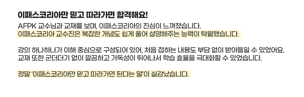 사업자등록번호 105-86-56986 ㅣ 통신판매업신고번호 2005-02554 ㅣ 원격평생교육시설신고 제52호 서울특별시 영등포구 경인로 775 에이스하이테크시티 2동 10층 (주)이패스코리아 대표이사: 이재남 ㅣ 개인정보보호책임자 : 나현철 COPYRIGHT 2003-2024 EPASSKOREA. ALL RIGHTS RESERVED. 패밀리사이트 이패스비즈 이패스노무사 이패스관세사 이패스손사 이패스행정사 이패스 국민내일배움카드 한국증권금융연구소[KOSFI] AIFA (주)아이파경영아카데미 AIFA (주)국제금융회계아카데미 AIFA 우리경영아카데미