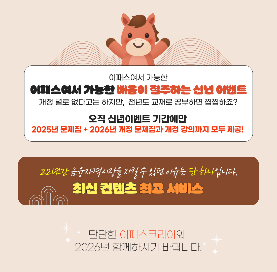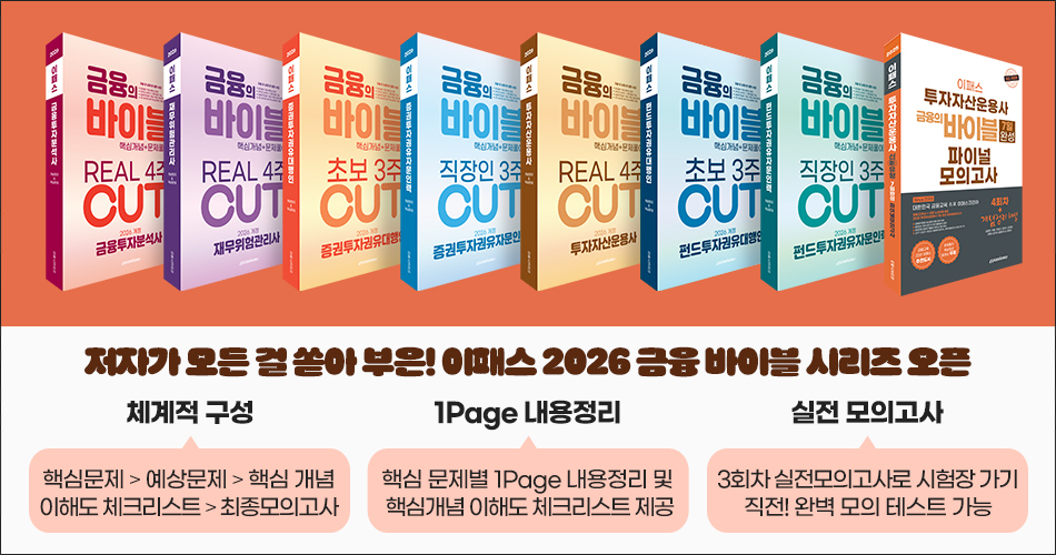 로그인 | 회원가입 | 이벤트3 | 마이페이지 | 내 강의실 | 온라인서점 | 내일배움 | 커뮤니티 | 고객 센터 공지사항 업데이트안내 기출문제복원 취업정보 할인쿠폰받기 Best 후기 이벤트안내 무료동영상 CFA 캠페인 평생교육이용권