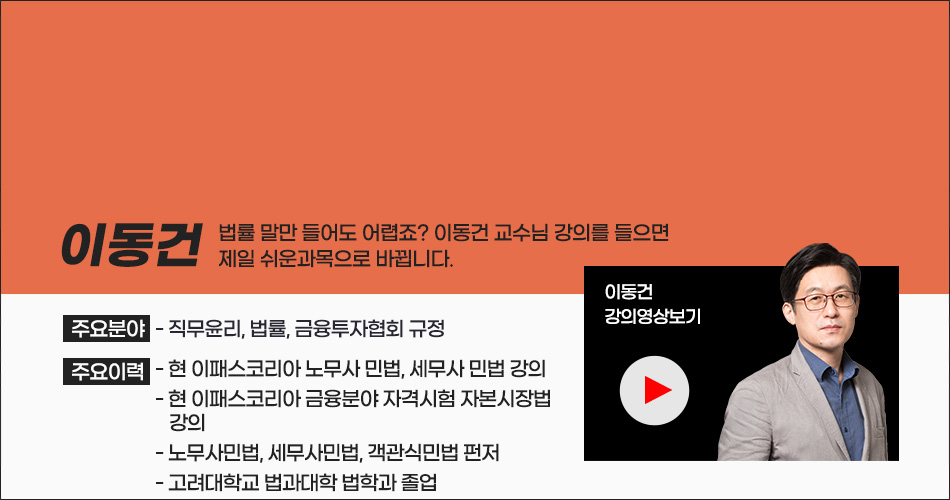 사업자등록번호 105-86-56986 ㅣ 통신판매업신고번호 2005-02554 ㅣ 원격평생교육시설신고 제52호 서울특별시 영등포구 경인로 775 에이스하이테크시티 2동 10층 (주)이패스코리아 대표이사: 이재남 ㅣ 개인정보보호책임자 : 나현철 COPYRIGHT 2003-2024 EPASSKOREA. ALL RIGHTS RESERVED. 패밀리사이트 이패스비즈 이패스노무사 이패스관세사 이패스손사 이패스행정사 이패스 국민내일배움카드 한국증권금융연구소[KOSFI] AIFA (주)아이파경영아카데미 AIFA (주)국제금융회계아카데미 AIFA 우리경영아카데미