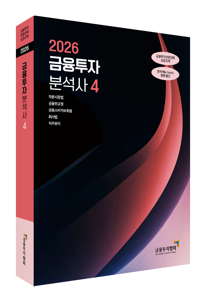 온라인서점국제자격도서 - CFA - FRM - CAIA - CAMS금융투자자격도서 - 증권금융기초입문 - 펀드투자권유대행인 - 증권투자권유대행인 - 펀드투자권유자문인력 - 증권투자권유자문인력 - 파생상품투자권유자문인력 - 투자자산운용사 - 금융투자분석사 - 재무위험관리사은행/무역/보험자격도서 - 자산관리사(은행 FP) - 은행텔러 - 외환전문역 - 국제무역사/무역영어 - 원산지관리사 - AFPK - CFP - 보세사 - 물류관리사 - 유통관리사 2급 - 신용분석사 - TPAC금융일반도서 - 금융일반세무회계자격도서 - 전산세무/회계 - 세무회계 - TAT/FAT - 재경/회계관리사 - IFRS관리사 - 세무/회계 실무기술자격증도서 - 공조냉동기계 - 정보통신 - 실내건축 - 자동차정비 - 용접 - 에너지관리 - 소방설비 - 식물보호 - 산업위생관리 - 산업안전 - 건설안전 - 산업안전지도사 - 전기 - 가스 - 수질환경 - 컴퓨터활용능력한국사도서 - 한국사능력검정시험소방승진 - 소방전술 - 소방공무원법 - 소방법령II - 위험물안전관리법 - 다중이용업소법 - 행정법 - 봉투 모의고사 - 가산점 고객센터 교육문의 1600-0522 평일 09:00~21:00 토/일요일 09:00~18:00 담당자별 내선보기 온라인서점 바로가기 강의 교재 구매홈>온라인서점>금융투자자격도서 - 신청하신 교육과정의 교재를 구매하 실 수 있습니다. 2026 금융투자분석사 4 편저 : 금융투자교육원 (http://www.kifin.or.kr/) 발행처 : 한국금융투자협회 (http://license.kofia.or.kr/) 출판사: 금융투자교육원|출판년도: 2026년 27,000원 27,000원 0원 구매하기 장바구니담기 2026 투자자산운용사 1 편저 : 금융투자교육원 (http://www.kifin.or.kr/) 발행처 : 한국금융투자협회 (http://license.kofia.or.kr/) 출판사: 금융투자교육원|출판년도: 2026년 26,000원 26,000원 0원 구매하기 장바구니담기 2026 투자자산운용사 2 편저 : 금융투자교육원 (http://www.kifin.or.kr/) 발행처 : 한국금융투자협회 (http://license.kofia.or.kr/) 출판사: 금융투자교육원|출판년도: 2026년 24,000원 24,000원 0원 구매하기 장바구니담기 2026 투자자산운용사 3 편저 : 금융투자교육원 (http://www.kifin.or.kr/) 발행처 : 한국금융투자협회 (http://license.kofia.or.kr/) 출판사: 금융투자교육원|출판년도: 2026년 31,000원 31,000원 0원 구매하기 장바구니담기 < 11 12 13 14 15 >