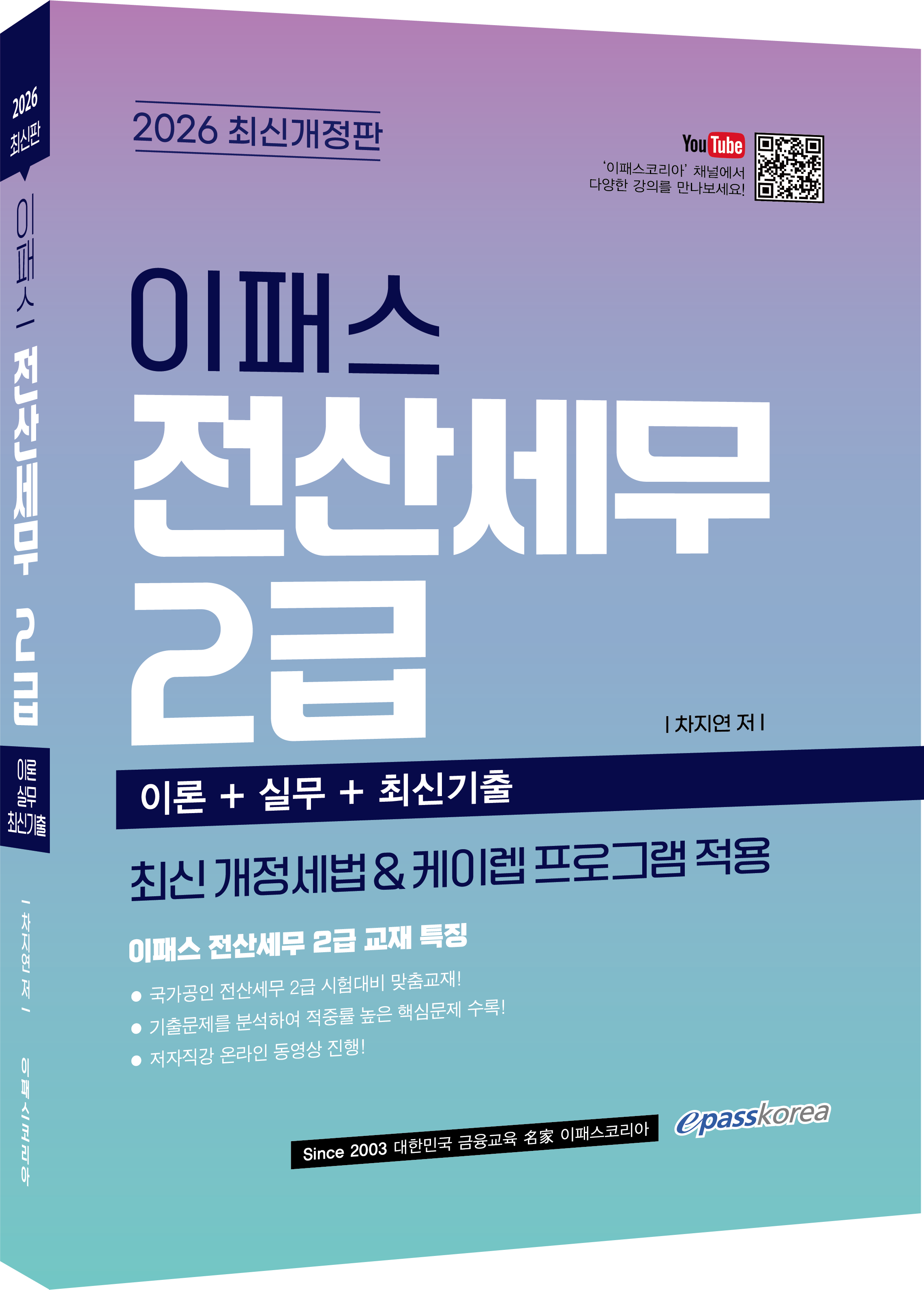 온라인서점국제자격도서 - CFA - FRM - CAIA - CAMS금융투자자격도서 - 증권금융기초입문 - 펀드투자권유대행인 - 증권투자권유대행인 - 펀드투자권유자문인력 - 증권투자권유자문인력 - 파생상품투자권유자문인력 - 투자자산운용사 - 금융투자분석사 - 재무위험관리사은행/무역/보험자격도서 - 자산관리사(은행 FP) - 은행텔러 - 외환전문역 - 국제무역사/무역영어 - 원산지관리사 - AFPK - CFP - 보세사 - 물류관리사 - 유통관리사 2급 - 신용분석사 - TPAC금융일반도서 - 금융일반세무회계자격도서 - 전산세무/회계 - 세무회계 - TAT/FAT - 재경/회계관리사 - IFRS관리사 - 세무/회계 실무기술자격증도서 - 공조냉동기계 - 정보통신 - 실내건축 - 자동차정비 - 용접 - 에너지관리 - 소방설비 - 식물보호 - 산업위생관리 - 산업안전 - 건설안전 - 산업안전지도사 - 전기 - 가스 - 수질환경 - 컴퓨터활용능력한국사도서 - 한국사능력검정시험소방승진 - 소방전술 - 소방공무원법 - 소방법령II - 위험물안전관리법 - 다중이용업소법 - 행정법 - 봉투 모의고사 - 가산점 고객센터 교육문의 1600-0522 평일 09:00~21:00 토/일요일 09:00~18:00 담당자별 내선보기 온라인서점 바로가기 강의 교재 구매홈>온라인서점>세무회계자격도서>전산세무/회계 - 신청하신 교육과정의 교재를 구매하 실 수 있습니다. 2026 이패스 전산세무 2급 전산세무회계 자격증은 회계의 이론지식과 실무지식을 동시에 평가하는 국가공인자격시 험입니다. 전산세무회계 자격증은 범위나 난이도에 따라 전산회계 2급부터 전산세무 1급 까지 4가지로 구분됩니다. 따라서 처음 세무회계를 접하는 일반인부터 특성화 고등학생 또 는 세무회계 전공자까지 난이도에 맞는 맞춤 공부가 가능한 가장 선호되는 자격증입니다. 그 중 전산세무2급은 실무에 가장 많이 접하는 부가가치세, 종합소득세 이론과 실무를 다 루고 있기에 실무에 바로 적응이 가능한 자격증입니다. 출판사: 이패스코리아|출판년도: 2026년 30,000원 27,000원 270원 구매하기 장바구니담기 2026 이패스 전산회계 1급 2026년도 전산회계 1급 대비 맞춤 교재입니다. 출판사: 이패스코리아|출판년도: 2026년 29,000원 26,100원 260원 구매하기 장바구니담기 2025 이패스 전산세무 1급 (재무/원가/부가세/소득세/법인세+기출테마/기출문제편) 2025년 전산세무 1급 시험대비 맞춤 교재 입니다. 출판사: 이패스코리아|출판년도: 2025년 38,000원 34,200원 342원 구매하기 장바구니담기 < 1 >
