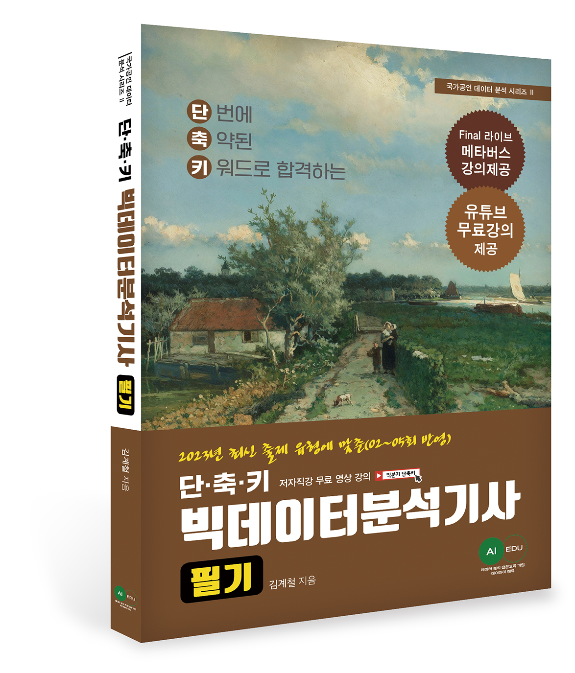 고객센터 교육문의 1600-0522 평일 09:00~21:00 토/일요일 09:00~18:00 담당자별 내선보기 온라인서점 바로가기 강의 교재 구매홈>R/ADsP - 신청하신 교육과정의 교재를 구매하 실 수 있습니다. 2023 ADsP 한권으로 끝내기(이론+요약 문제) 출판사: 에이아이에듀|출판년도: 2022년 29,000원 26,100원 261원 구매하기 장바구니담기 2023 ADsP 한권으로 끝내기(이론+요약 문제_개정판) 2023 ADsP 정규과정 도서입니다!! 출판사: 에이아이에듀|출판년도: 2023년 31,000원 27,900원 279원 구매하기 장바구니담기 44개 출제포인트로 끝내는 SQLD Masterbook 2024 SQLD 정규과정 도서입니다. 출판사: 이패스코리아|출판년도: 2024년 18,000원 162원 구매하기 2023 단·축·키 빅데이터 분석기사 필기 2023 빅데이터분석기사 필기 정규과정 도서입니다. 출판사: 에이아이에듀|출판년도: 2023년 34,000원 30,600원 306원 구매하기 장바구니담기 < 1 2 3 4 >