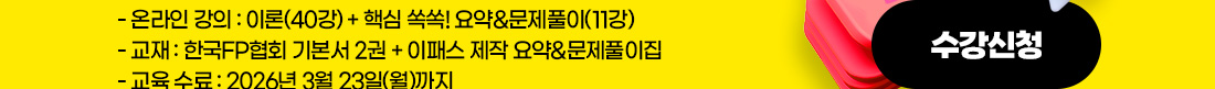 로그인 | 회원가입 | 이벤트5 | 마이페이지 | 내 강의실 | 온라인서점 | 내일배움 | 커뮤니티 | 고객 센터 공지사항 업데이트안내 기출문제복원 취업정보 할인쿠폰받기 Best 후기 이벤트안내 무료동영상 CFA 캠페인 평생교육이용권