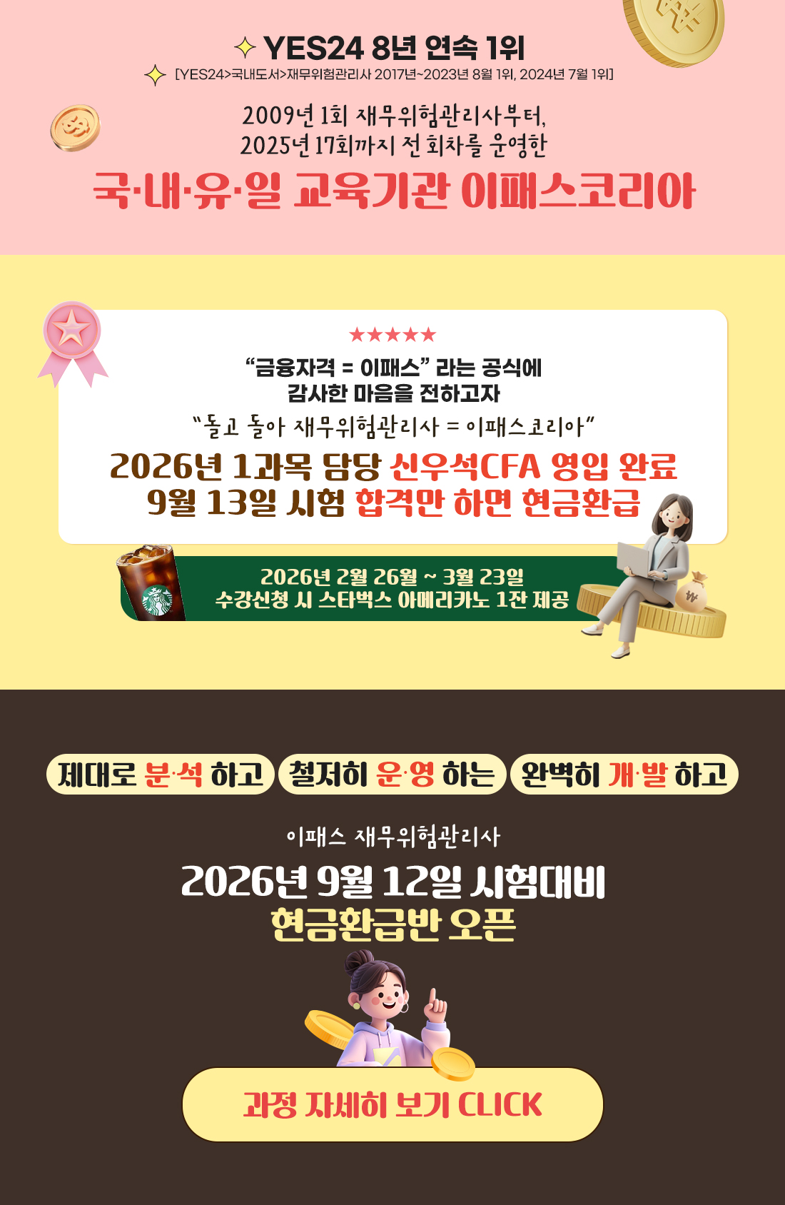 로그인 | 회원가입 | 이벤트2 | 마이페이지 | 내 강의실 | 온라인서점 | 내일배움 | 커뮤니티 | 고객 센터 공지사항 업데이트안내 기출문제복원 취업정보 할인쿠폰받기 Best 후기 이벤트안내 무료동영상 CFA 캠페인 평생교육이용권