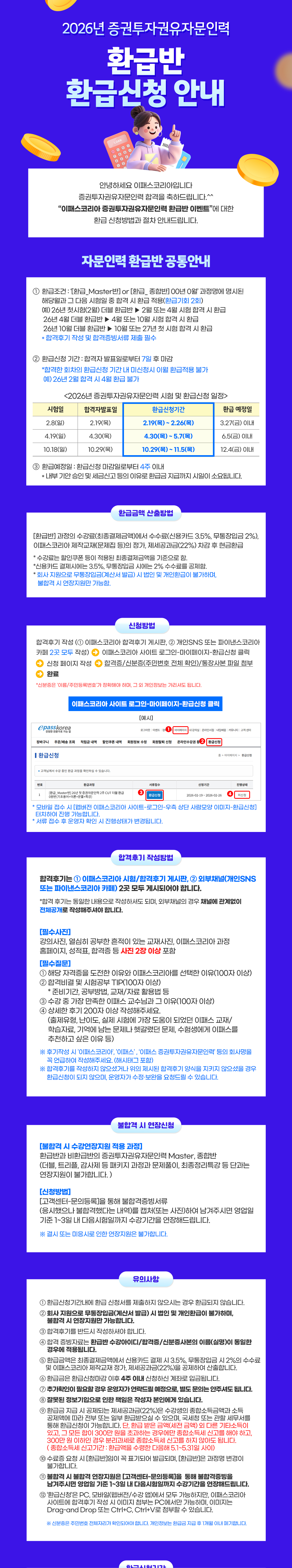 공지사항홈>커뮤니티>공지사항 제목 2026년 증권투자권유자문인력 환급반 환급신청 및 불합격연장(비환급반 포함) 안내 등록일 2026-02-11 목록 다음글 2026년 증권투자권유자문인력 환급반 환급신청 및 불합격연장(비환급반 포함) 안내 이전글 [공지] 이패스비즈 사이트 운영 종료 및 이패스코리아 통합 안내(2/10)