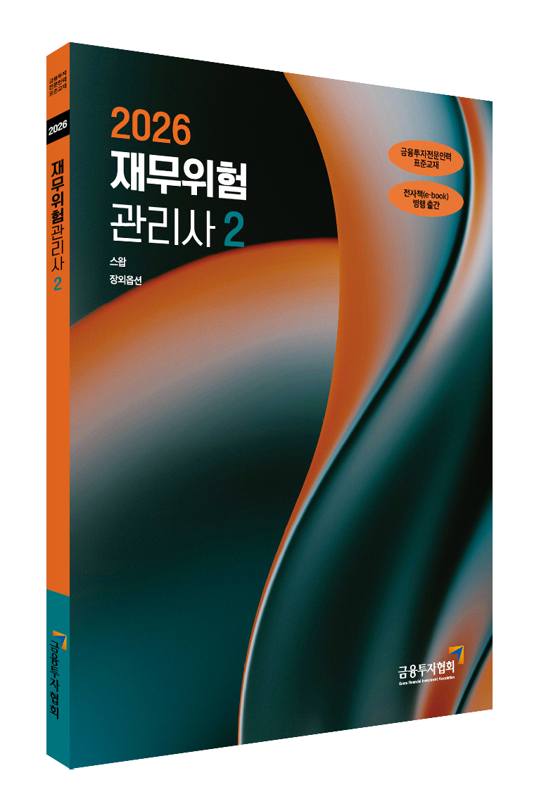 온라인서점국제자격도서 - CFA - FRM - CAIA - CAMS금융투자자격도서 - 증권금융기초입문 - 펀드투자권유대행인 - 증권투자권유대행인 - 펀드투자권유자문인력 - 증권투자권유자문인력 - 파생상품투자권유자문인력 - 투자자산운용사 - 금융투자분석사 - 재무위험관리사은행/무역/보험자격도서 - 자산관리사(은행 FP) - 은행텔러 - 외환전문역 - 국제무역사/무역영어 - 원산지관리사 - AFPK - CFP - 보세사 - 물류관리사 - 유통관리사 2급 - 신용분석사 - TPAC금융일반도서 - 금융일반세무회계자격도서 - 전산세무/회계 - 세무회계 - TAT/FAT - 재경/회계관리사 - IFRS관리사 - 세무/회계 실무기술자격증도서 - 공조냉동기계 - 정보통신 - 실내건축 - 자동차정비 - 용접 - 에너지관리 - 소방설비 - 식물보호 - 산업위생관리 - 산업안전 - 건설안전 - 산업안전지도사 - 전기 - 가스 - 수질환경 - 컴퓨터활용능력한국사도서 - 한국사능력검정시험소방승진 - 소방전술 - 소방공무원법 - 소방법령II - 위험물안전관리법 - 다중이용업소법 - 행정법 - 봉투 모의고사 - 가산점 고객센터 교육문의 1600-0522 평일 09:00~21:00 토/일요일 09:00~18:00 담당자별 내선보기 온라인서점 바로가기 강의 교재 구매홈>온라인서점>금융투자자격도서 - 신청하신 교육과정의 교재를 구매하 실 수 있습니다. 2026 재무위험관리사 1 편저 : 금융투자교육원 (http://www.kifin.or.kr/) 발행처 : 한국금융투자협회 (http://license.kofia.or.kr/) 출판사: 금융투자교육원|출판년도: 2026년 20,000원 20,000원 0원 구매하기 장바구니담기 2025 펀드투자권유자문인력(파생상품펀드) 편저 : 금융투자교육원 (http://www.kifin.or.kr/) 발행처 : 한국금융투자협회 (http://license.kofia.or.kr/) 출판사: 금융투자교육원|출판년도: 2025년 11,000원 11,000원 0원 구매하기 장바구니담기 2026 재무위험관리사 2 편저 : 금융투자교육원 (http://www.kifin.or.kr/) 발행처 : 한국금융투자협회 (http://license.kofia.or.kr/) 출판사: 금융투자교육원|출판년도: 2026년 9,000원 9,000원 0원 구매하기 장바구니담기 2026 재무위험관리사 3 편저 : 금융투자교육원 (http://www.kifin.or.kr/) 발행처 : 한국금융투자협회 (http://license.kofia.or.kr/) 출판사: 금융투자교육원|출판년도: 2026년 24,000원 24,000원 0원 구매하기 장바구니담기 < 1 2 3 4 5 6 7 8 9 10 >